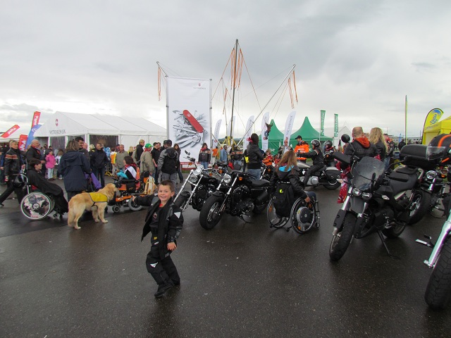 Bei nicht gerade perfektem Wetter fand der 20. Love-Ride statt, aber das tat der Freude und Begeisterung aller Beteiligten keinen Abbruch ! Immerhin: 3400 Motorräder und 5500 Besucher waren dabei und 215 behinderte Kinder konnten mitfahren ! :-))
